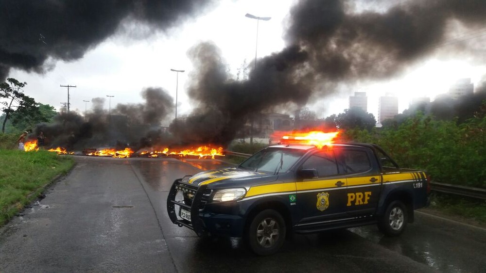 Manifestantes colocaram fogo em pneus e fecharam a BR-101, na Zona Oeste do Recife (Foto: PRF/ Divulgação)