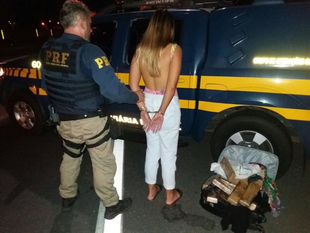 ma jovem de 20 anos foi presa por tráfico de drogas na noite de sábado (24), na Via Dutra, em Itatiaia, RJ. Segundo a Polícia Rodoviária Federal, no ônibus em que ela estava foram encontrados 21 tabletes de maconha escondidos dentro de uma mala.