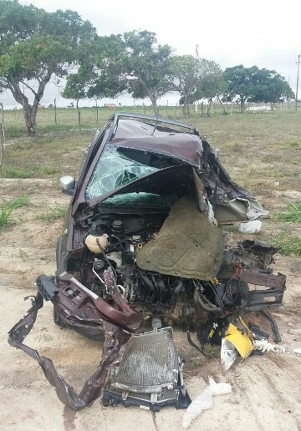 Carro ficou destruído após colidir em ônibus (Foto: Divulgação/PRF)