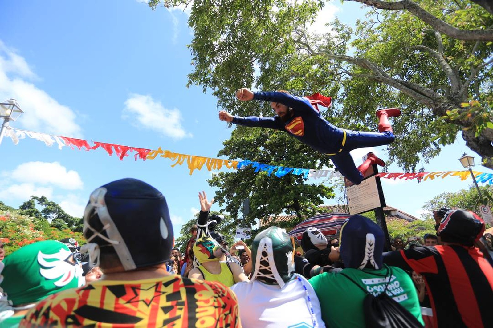 Super-homem voou no bloco, que arrastou uma multidão ao som do frevo.