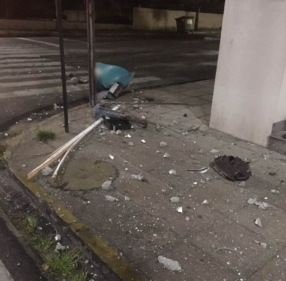 Telefone público foi destruído com o impacto da colisão (Foto: Reprodução/WhatsApp)