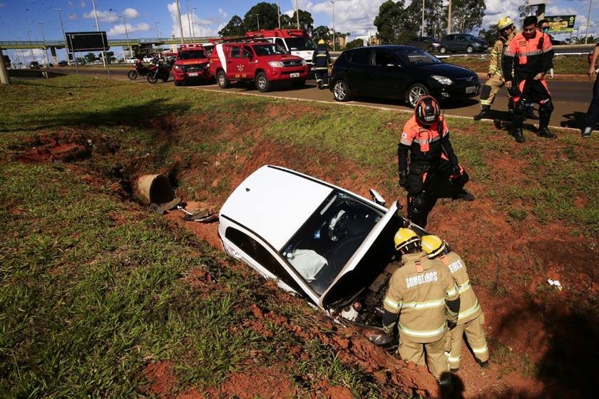 Bombeiros verificaram possíveis vazamentos de óleo e combustível, além de desligarem a bateria do HB20 para evitar curto-circuito e consequente incêndio. Não houve impacto no trânsito e o local ficou aos cuidados do Departamento de Estradas de Rodagem do Distrito Federal (DER-DF). (Com informações do Corpo de Bombeiros Militar do Distrito Federal).