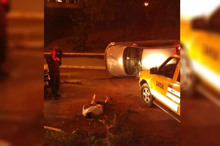 Uma mulher se jogou de um carro em movimento durante uma tentativa de sequestro relâmpago, na noite deste sábado (9/6), no Setor Comercial Sul. O suspeito chegou a tomar a direção do veículo, mas, perseguido por policiais militares, acabou perdendo o controle do automóvel e capotou poucos quilômetros depois, no começo da L2 Sul.