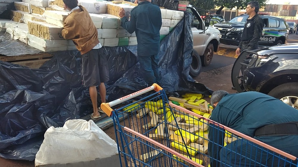 Polícia Militar (PM) apreendeu, na madrugada desta segunda-feira (6), quase cinco toneladas de maconha, na MS-156, em Dourados, município a 214 km de Campo Grande. A droga estava escondida na traseira de uma caminhonete e dois envolvidos, conforme a investigação, conseguiram fugir em direção a um milharal.