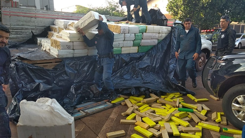 Policiais apreenderam quase 5 toneladas de droga em rodovia de MS (Foto: Polícia Militar/Divulgação)