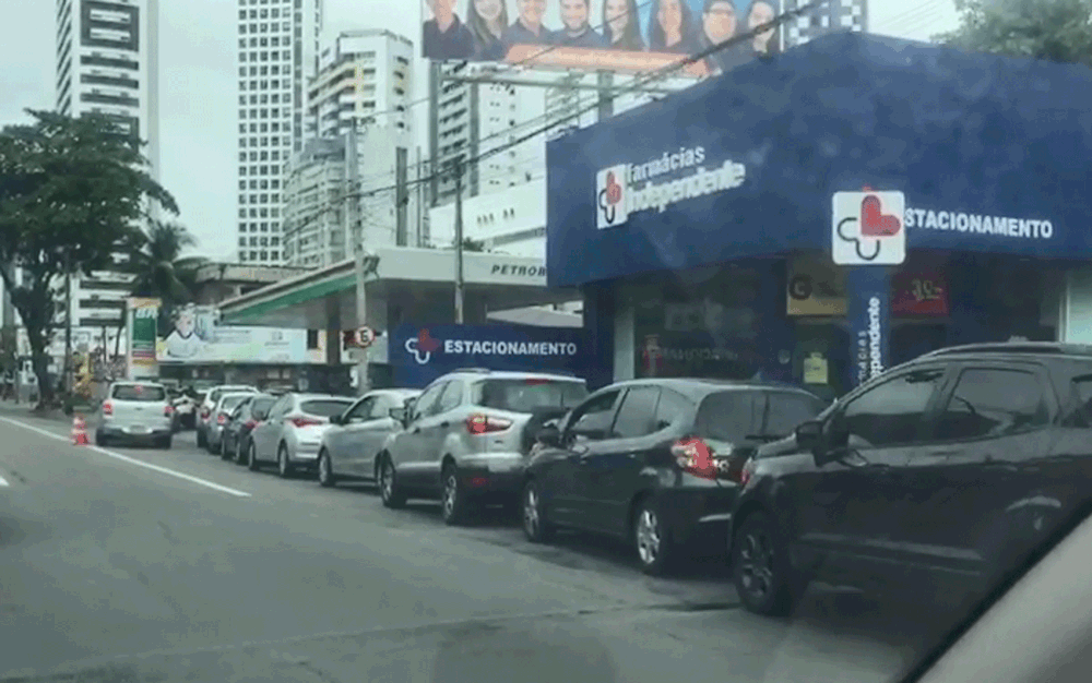 Na Zona Sul do Recife, na Avenida Domingos Ferreira, consumidores formam grandes filas neste domingo (2) em postos de combustíveis, com receio de um novo desabastecimento (Foto: Cláudia Prosini/TV Globo)