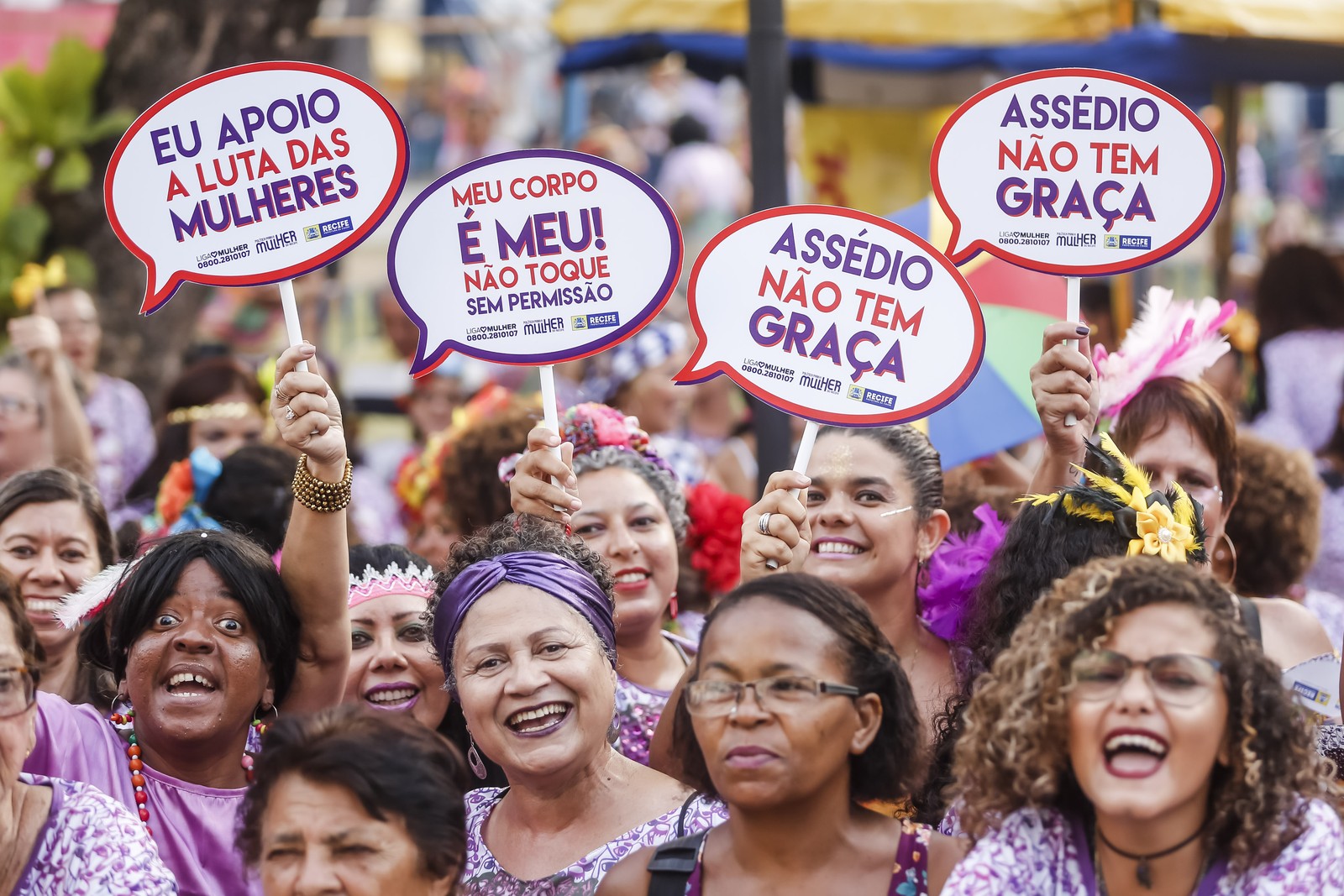 Temas como o direito sobre o sobre o próprio corpo, sexo e o fim da violência contra a mulher são debatidos em meio a irreverência da folia pernambucana.