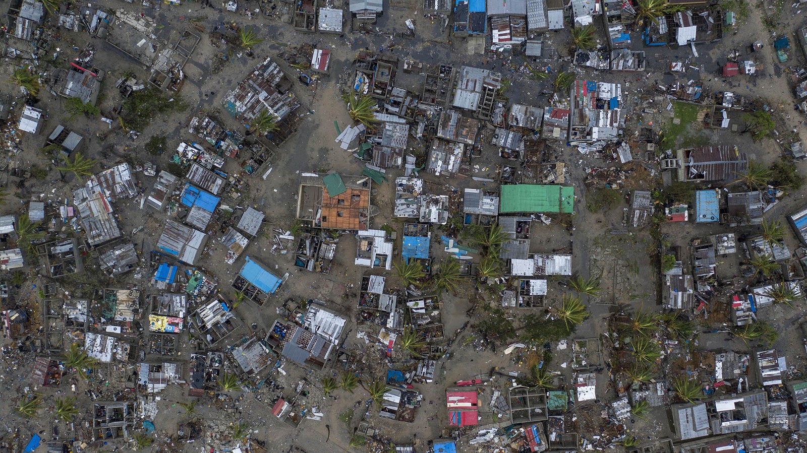 A vila de Praia Nova é vista em imagem feita por drone em Beira, Moçambique. O local foi um dos mais atingidos pela passagem do ciclone Idai — Foto: Josh Estey/CARE via AP