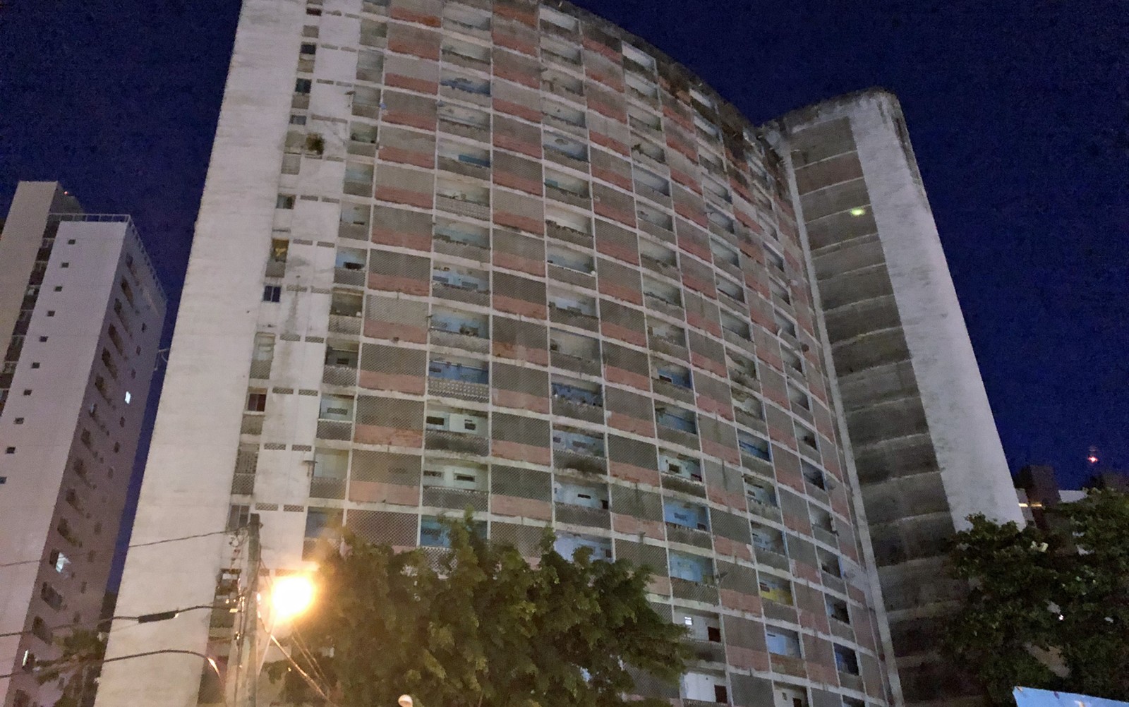 Sete apartamentos seguem ocupados no Edifício Holiday, na Zona Sul do Recife, na noite desta quinta-feira (21), dia seguinte ao fim do prazo determinado judicialmente para interdição e desocupação voluntária do prédio. Ao todo, há 25 moradores no local.