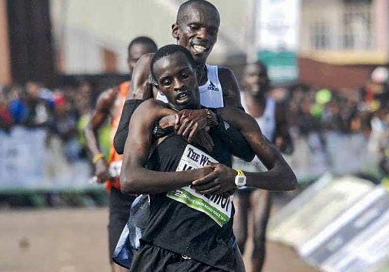 O atleta levantou Kipkemoi e levou o colega até a linha de chegada.